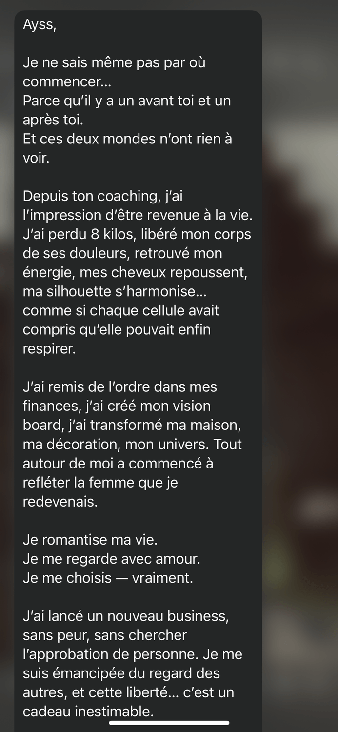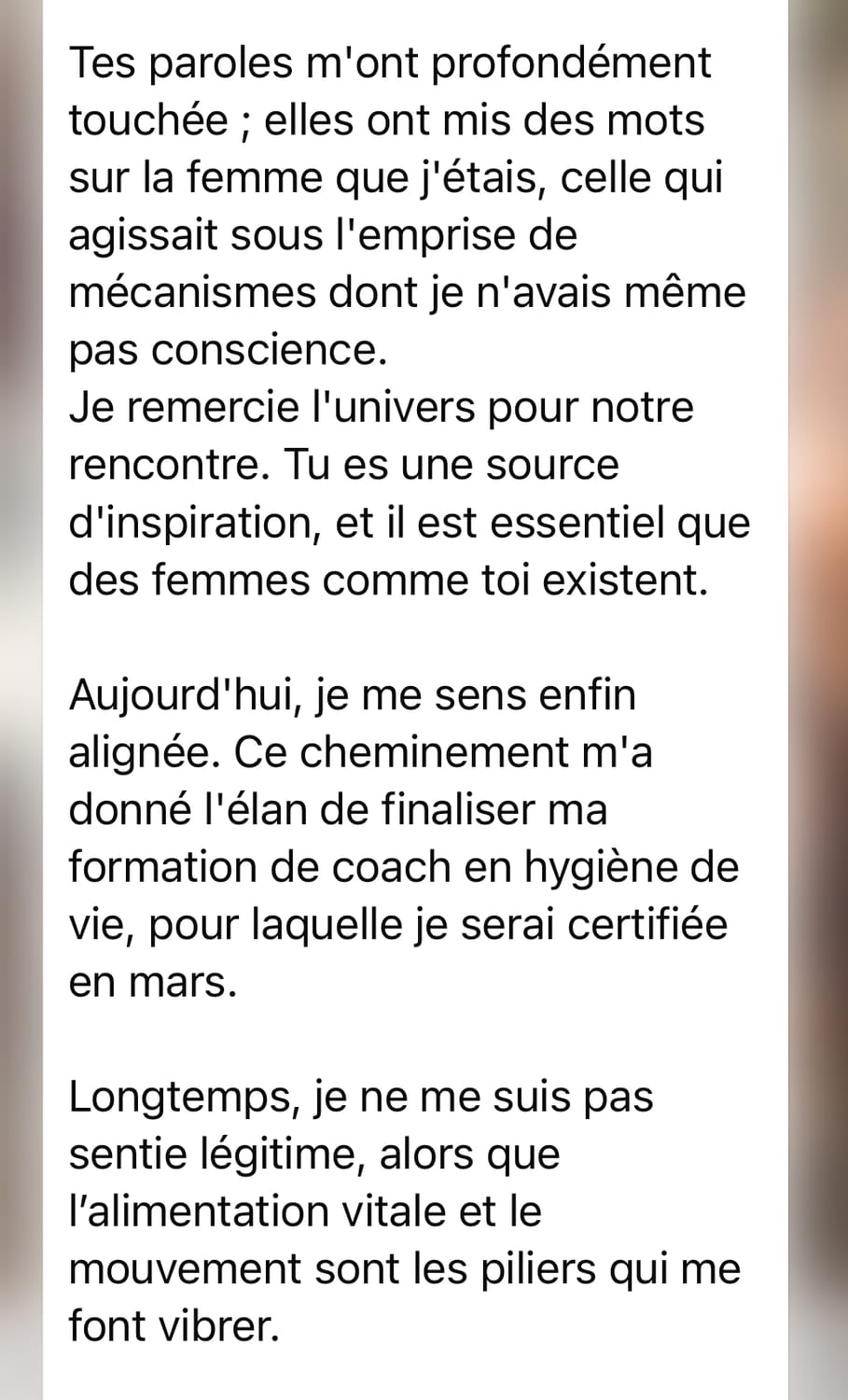 "Aujourd’hui, je me sens alignée. C’est comme si j’avais récupéré une partie de moi que j’avais oubliée."